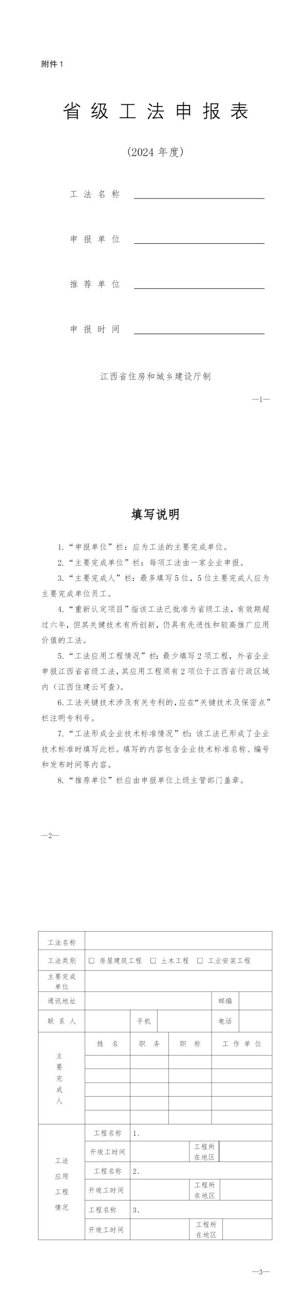 省级工法申报表