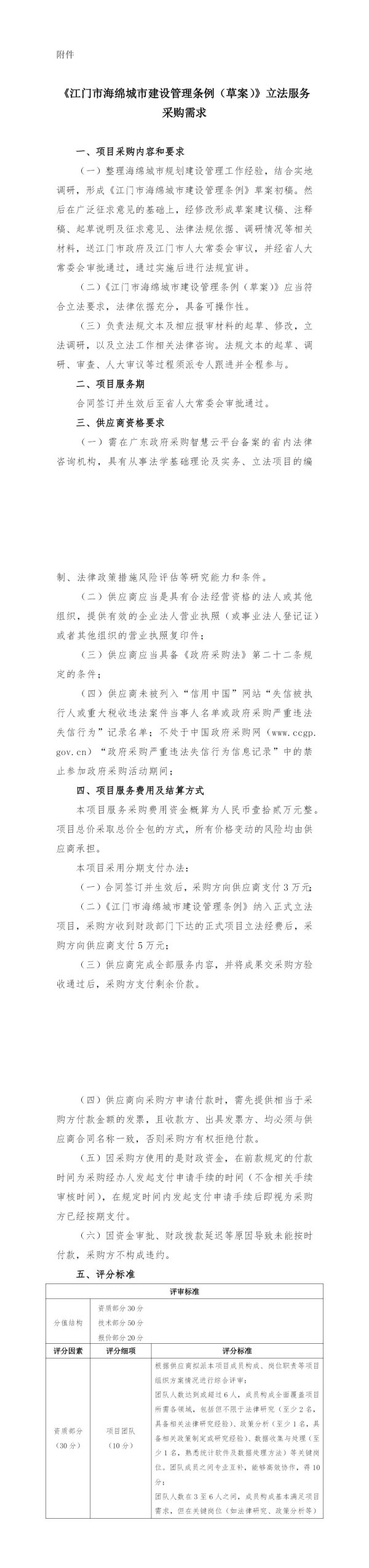 《江门市海绵城市建设管理条例(草案)》立法服务采购需求