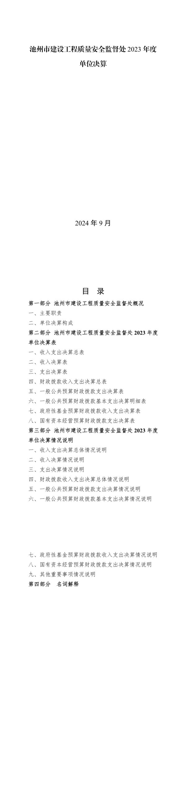 池州市建设工程质量安全监督处2023年度单位决算2024年9月