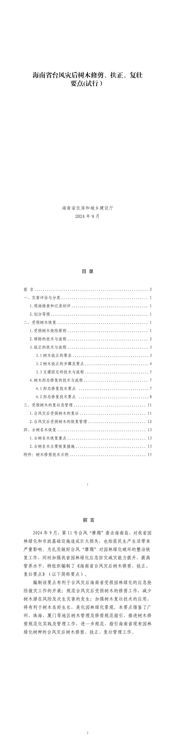 海南省台风灾后树木修剪、扶正、复壮要点(试行)海南省住房和城乡建设厅2024年9月