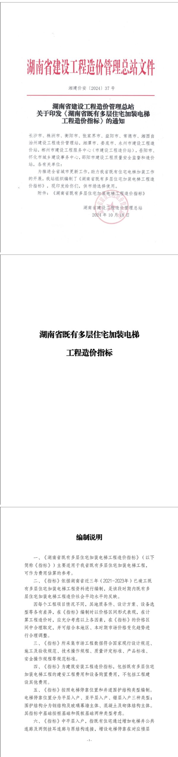 湖南省建设工程造价管理总站关于印发湖南省既有多层住宅加装电梯工程造价指标的通知