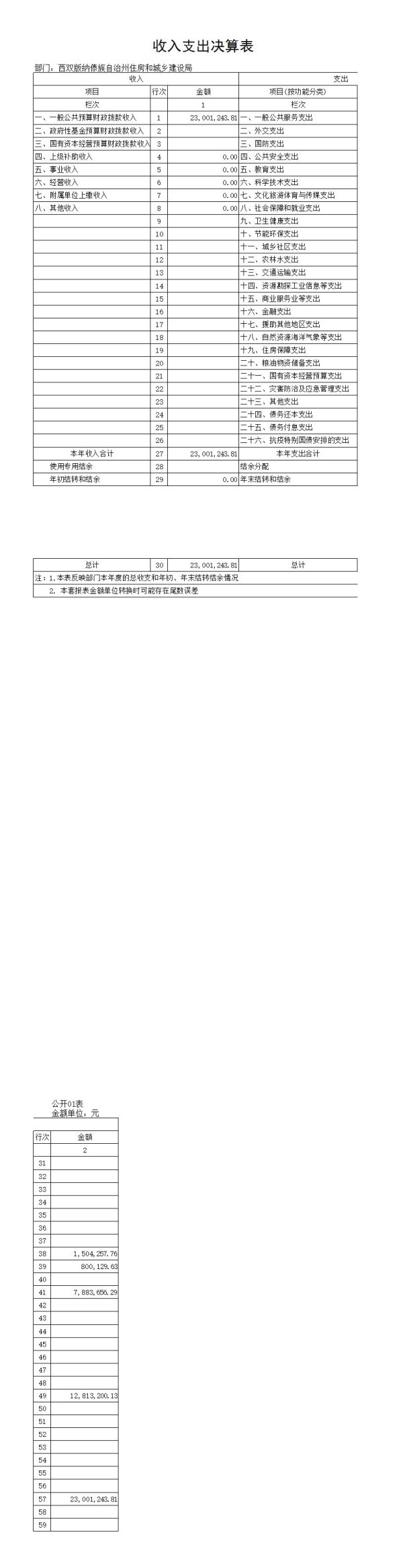 注:1.本表反映部门本年度的总收支和年初、年末结转结余情况