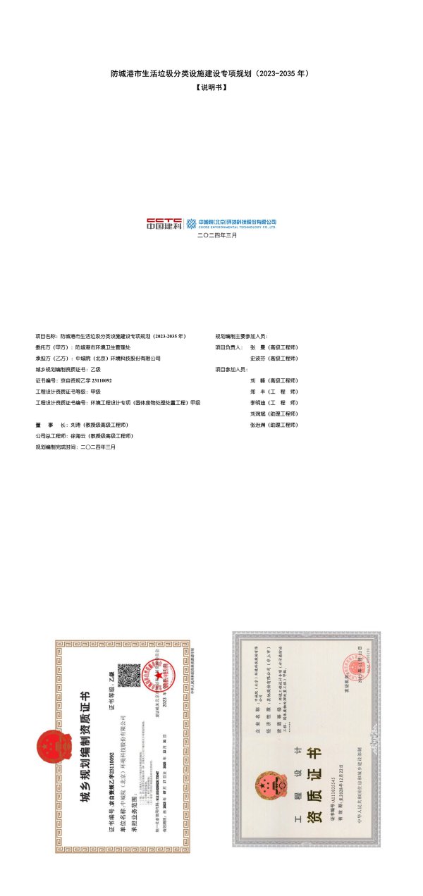 防城港市生活垃圾分类设施建设专项规划(2023-2035年)【说明书】市国建科中城(北京环境科技股份有眼公司ICUCDEENVIRONMENTALTECHNOLOGYCO.,LTD.二〇二四年三月