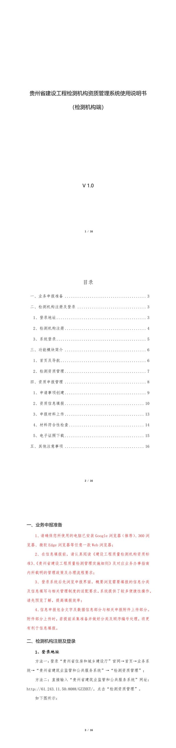 贵州省建设工程检测机构资质管理系统使用说明书(检测机构端)V1.01/16