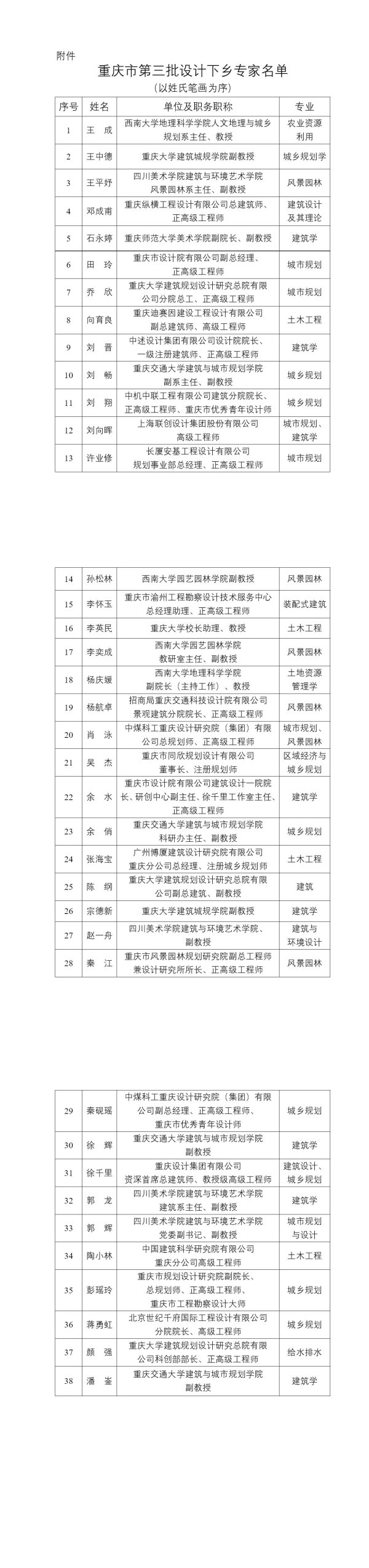 重庆市第三批设计下乡专家名单(以姓氏笔画为序)