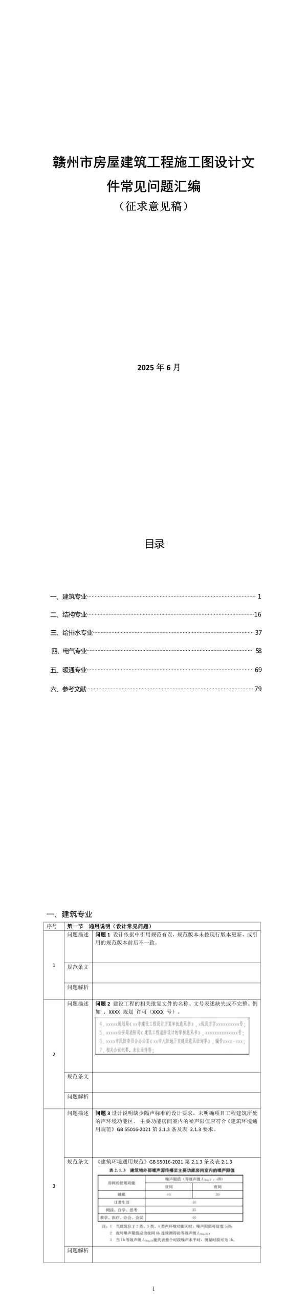 赣州市房屋建筑工程施工图设计文件常见问题汇编(征求意见稿)2025年6月