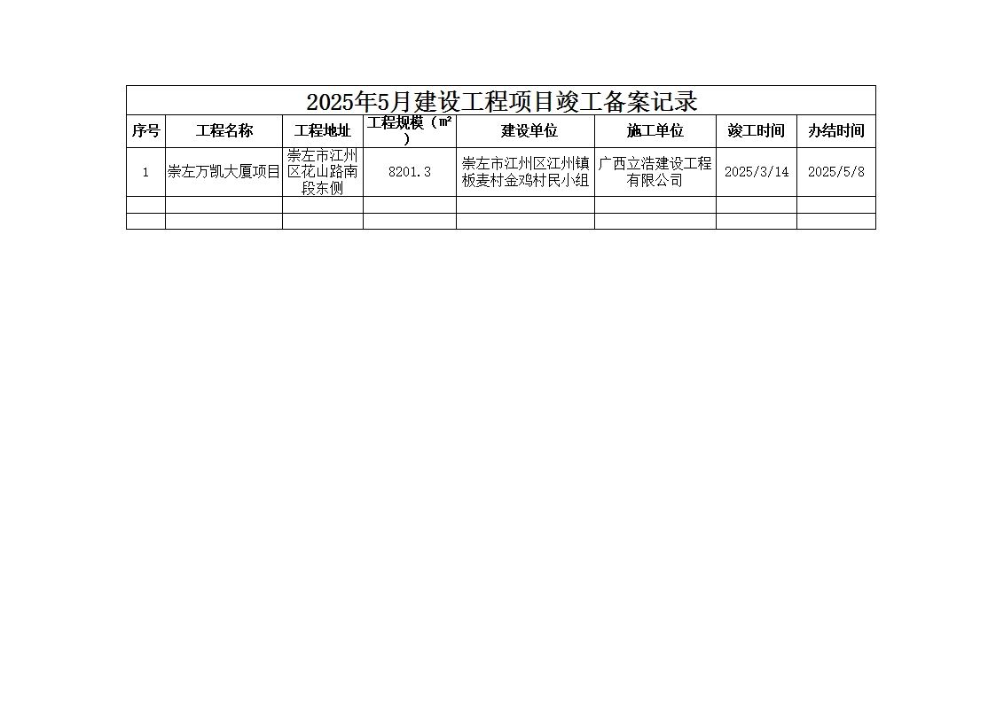 2025年5月建设工程项目竣工备案记录