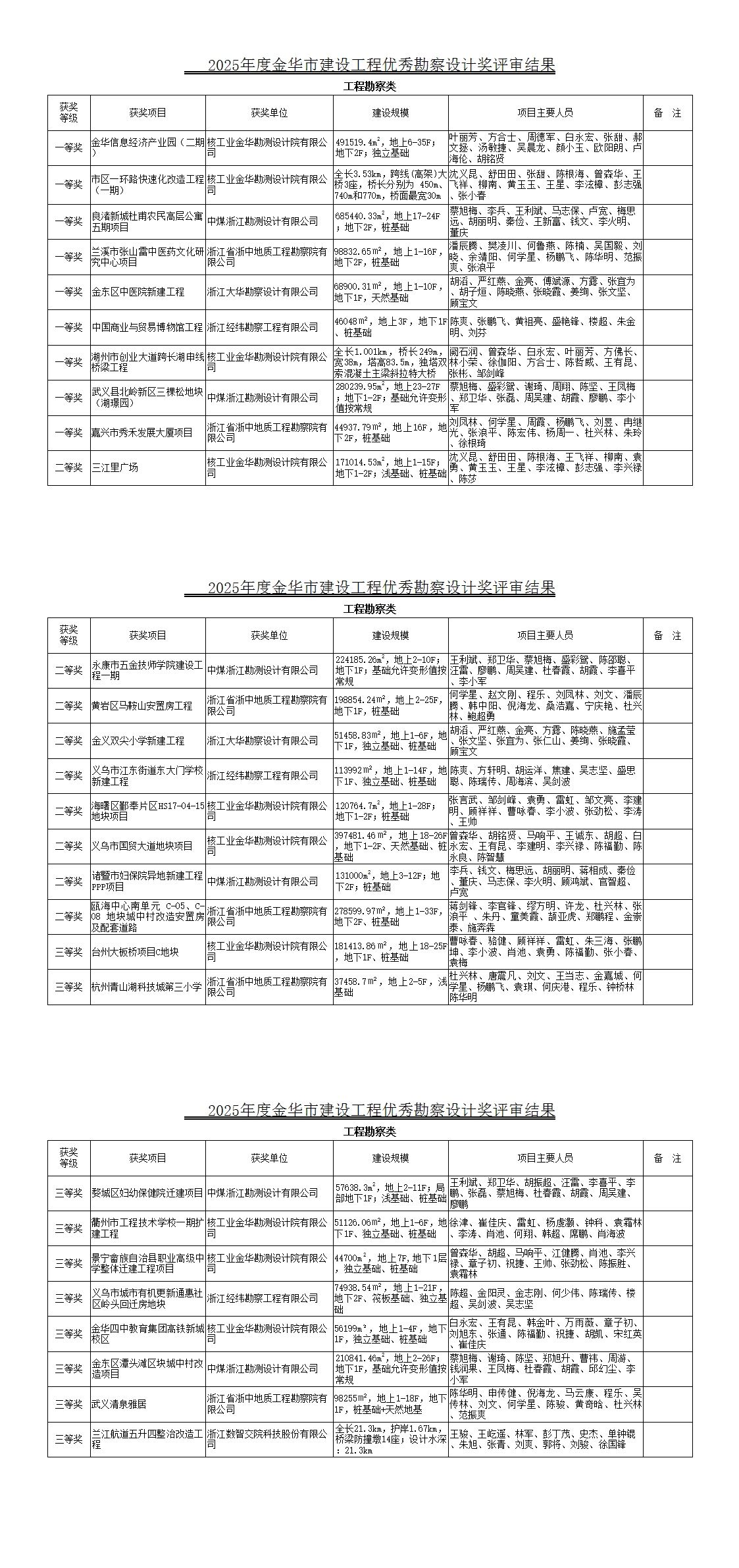 2025年度金华市建设工程优秀勘察设计奖评审结果